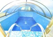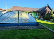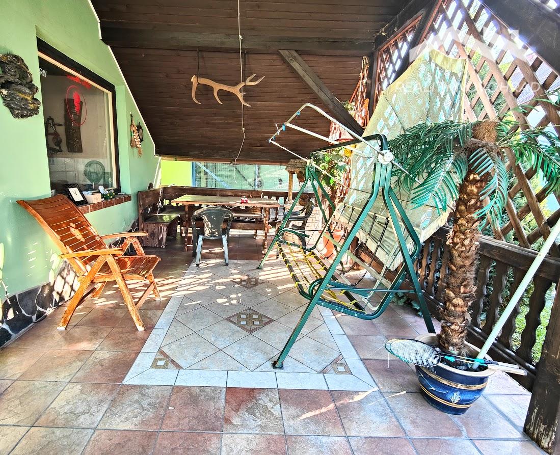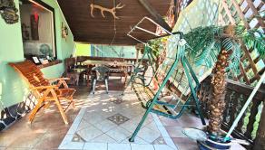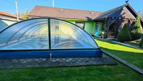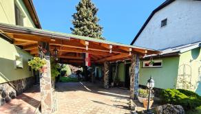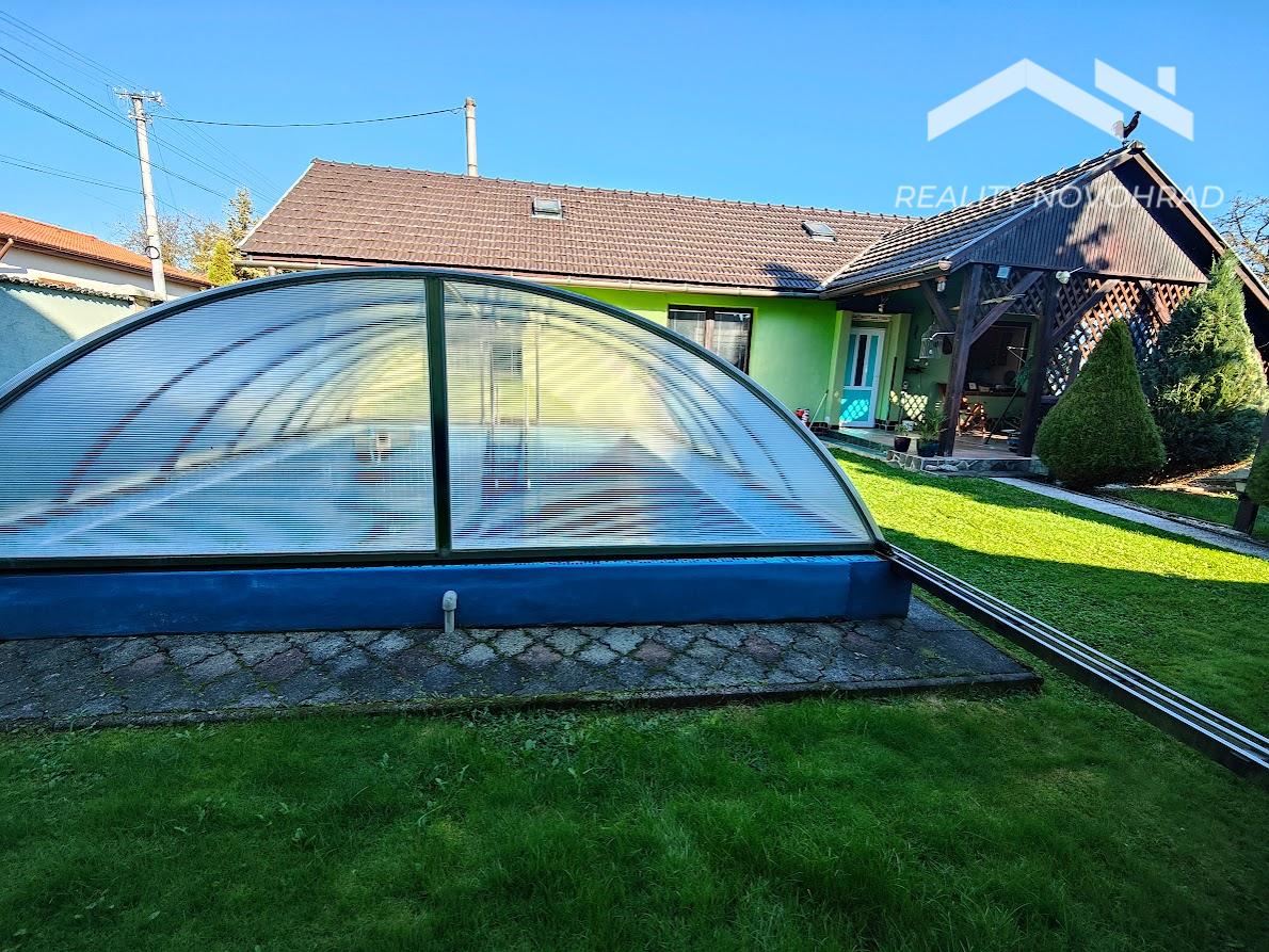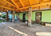 POZEMOK: S upravenou okrasnou záhradou, predzáhradkou, vydláždeným nádvorím, studňou, altánom so sedlovou strechou, podporné stĺpy obložené kameňom, možnosť parkovania vo dvore pre 2 autá , vonkajším bazénom s rozmermi 6x4,5 m, hĺbka do 2 m, hospodárskou budovou s dvomi skladovými miestnosťami a letnou kuchynkou. Nádvorie a chodníky vydláždené zámkovou dlažbou. V záhrade veľké klietky pre exotické vtáctvo.