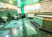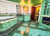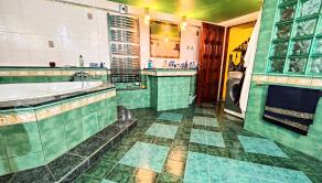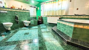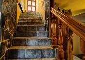 1.PRÍZEMIE : predsieň prepojená s kuchyňou, veľká kúpeľňa s podlahovým kúrením, rohovou vaňou, toaletou, bidetom, umývadlom, obývacia miestnosť, mramorové schodisko s dreveným zábradlím, steny obložené kameňom