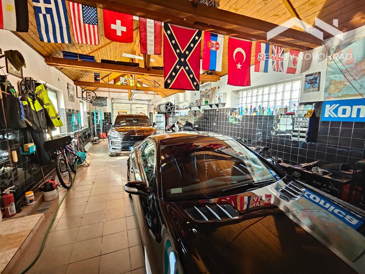 - veľká dvojmiestna garáž s vlastným sociálnym zariadením, vykurovaná priemyselnými radiátormi, s elektrickou bránou