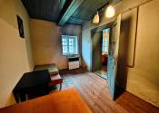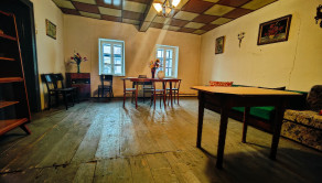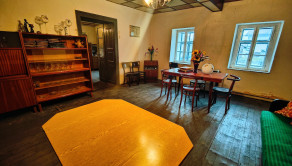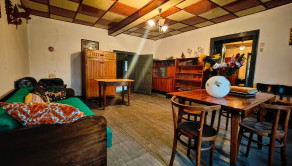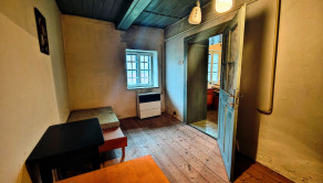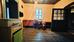 Vráťte sa späť v čase s týmto tradičným váľkovým domom, ktorý sa môže pochváliť originálnymi prvkami, ako sú odhalené trámy, pôvodné drevené podlahy, okná, dvere, zárubne, murovaná kachľová pec. Váľkový rodinný dom s kamennými základmi, je v pôvodnom, ale veľmi zachovalom stave. Umiestnený je v centre obce.