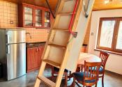 Moderný interiér: Chata s úžitkovou plochou 48 m² je zariadená v modernom štýle a ponúka všetko potrebné pre pohodlné bývanie. Podkrovie slúži ako spálňa - oddychový priestor, priestranná kuchyňa s krbovými kachľami zaručia príjemné teplo počas chladnejších dní.