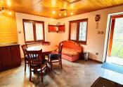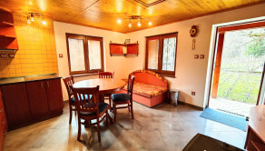 Komfort a praktickosť: Chata je vybavená plastovými oknami so žalúziami, kvalitnou podlahovou krytinou a modernou kuchynskou linkou spolu s obývacou časťou a osobitným WC.