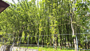 Celooplotená záhradkárska osada zabezpečená s diaľkovo ovládanou elektronickou bránou.