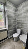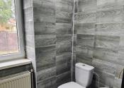 Priestranná kúpeľňa so sprchovým kútom a WC