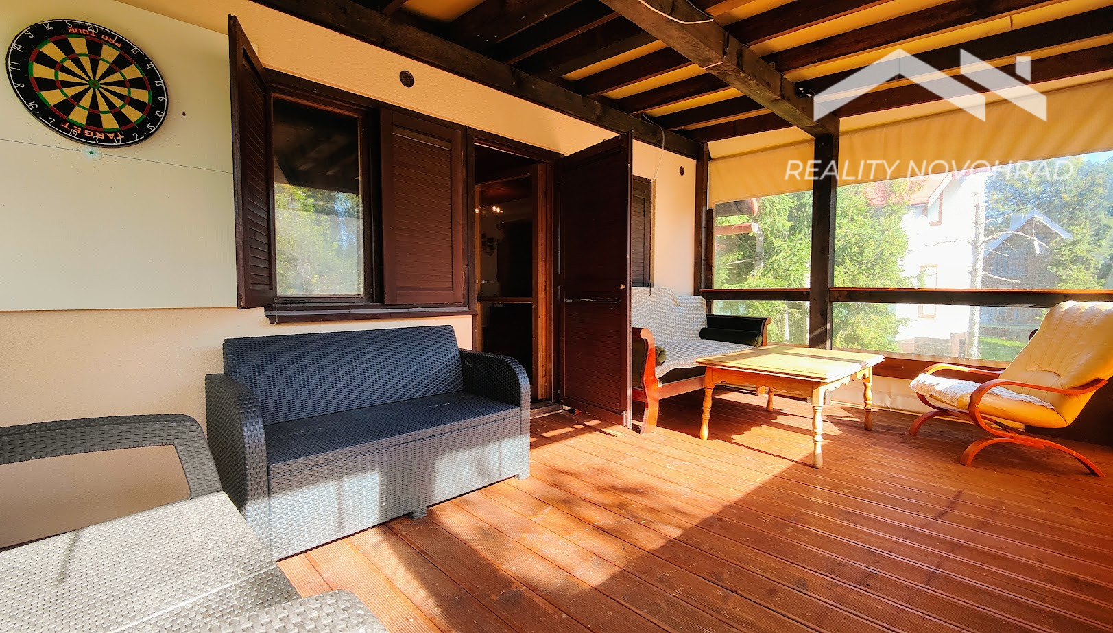 Výstup na Terasu: Priamo zo spoločenskej miestnosti sa dostanete na presvetlenú, krytú terasu s posedením, kde môžete nerušene grilovať za každého počasia.