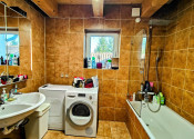 Prízemie: Plne vybavená kuchyňa, otvorená obývačka s krbom, spálňa, detská/hosťovská izba, kúpeľňa, toaleta, technická miestnosť, dva samostatné vchody.