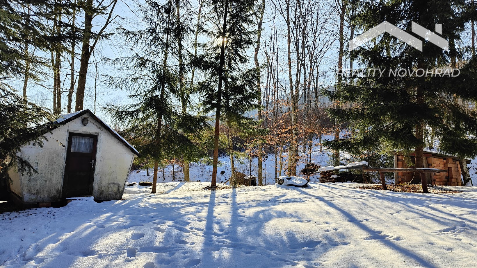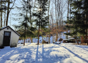 Na pozemku sa nachádza drevený domček vhodný pre deti alebo relax.