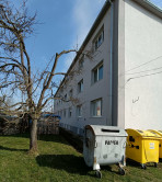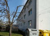 Zateplená bytovka s novou strechou a čistým vchodom.